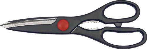 Forbici da cucina Multi Purpose Kitchen. Misura Complessivamente 21,3 centimetri. Lame di 8,65 centimetri inox. Lame dentate, può essere utilizzato anche come apribottiglie o schiaccianoci. impugnatura Resistente agli urti. |